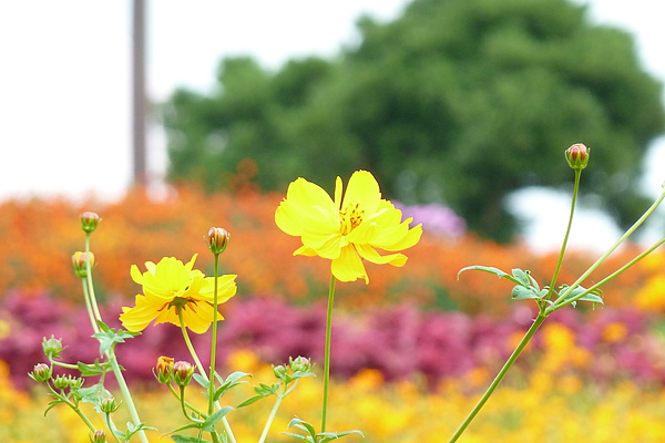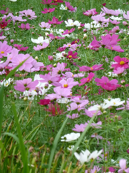 找到了一........大片的コスモス。今年的顏色都是黃橘色的, 非常鮮艷, 也有少數粉色的コスモス掺在其中.