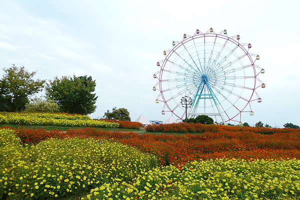 入園之後, 發現真的很大, 而且入口處沒什麼花, 我能參觀的時間不多, 於是詢問門口的服務人員如果我要看コスモス應該怎麼走...