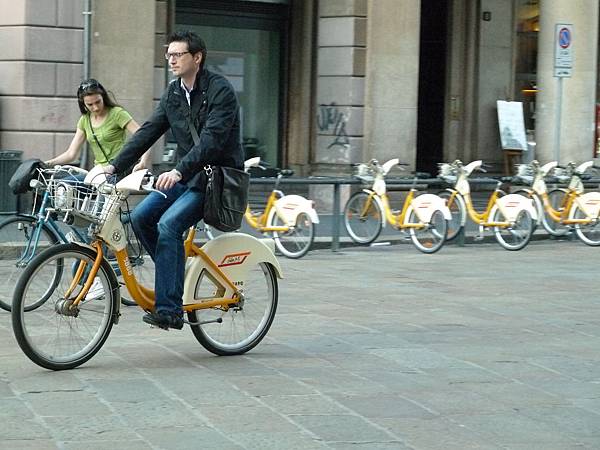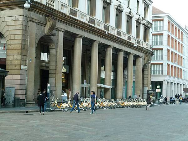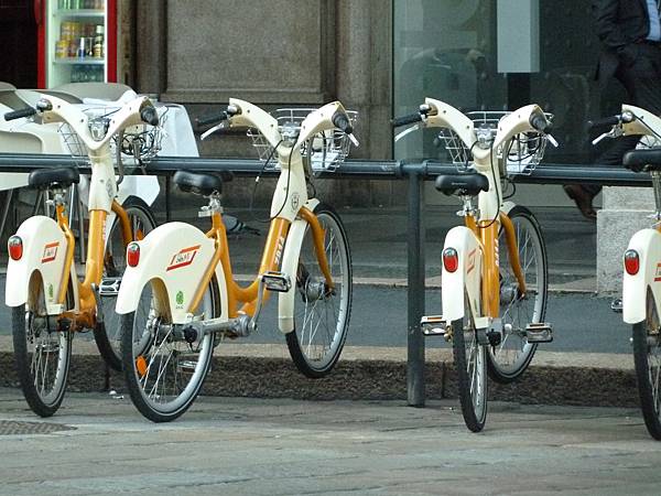 在米蘭街道移動行進時,徒然瞥見對面路旁停放整齊的自行車。